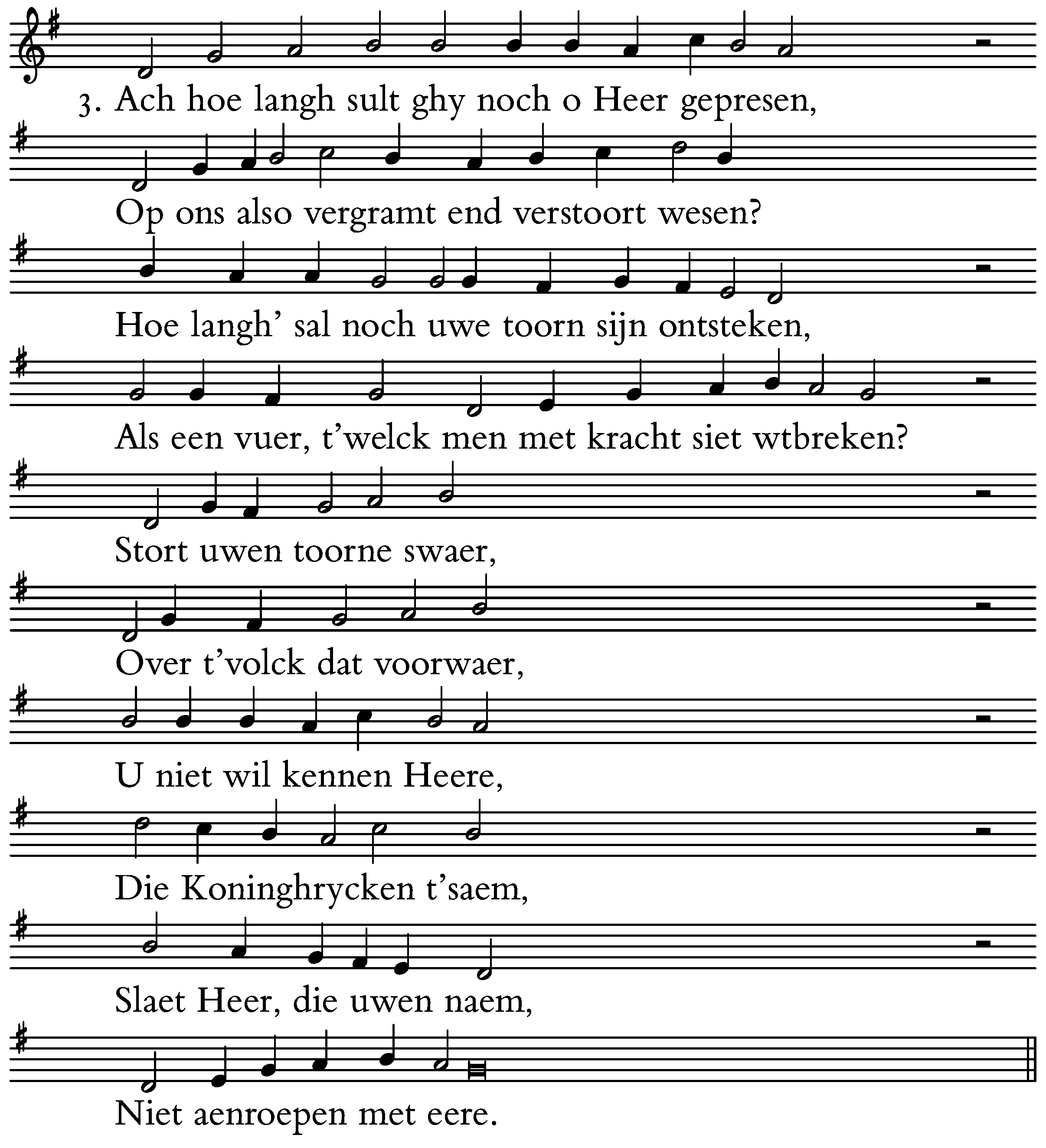 Hoe langh’ sal noch uwe toorn sijn ontsteken,