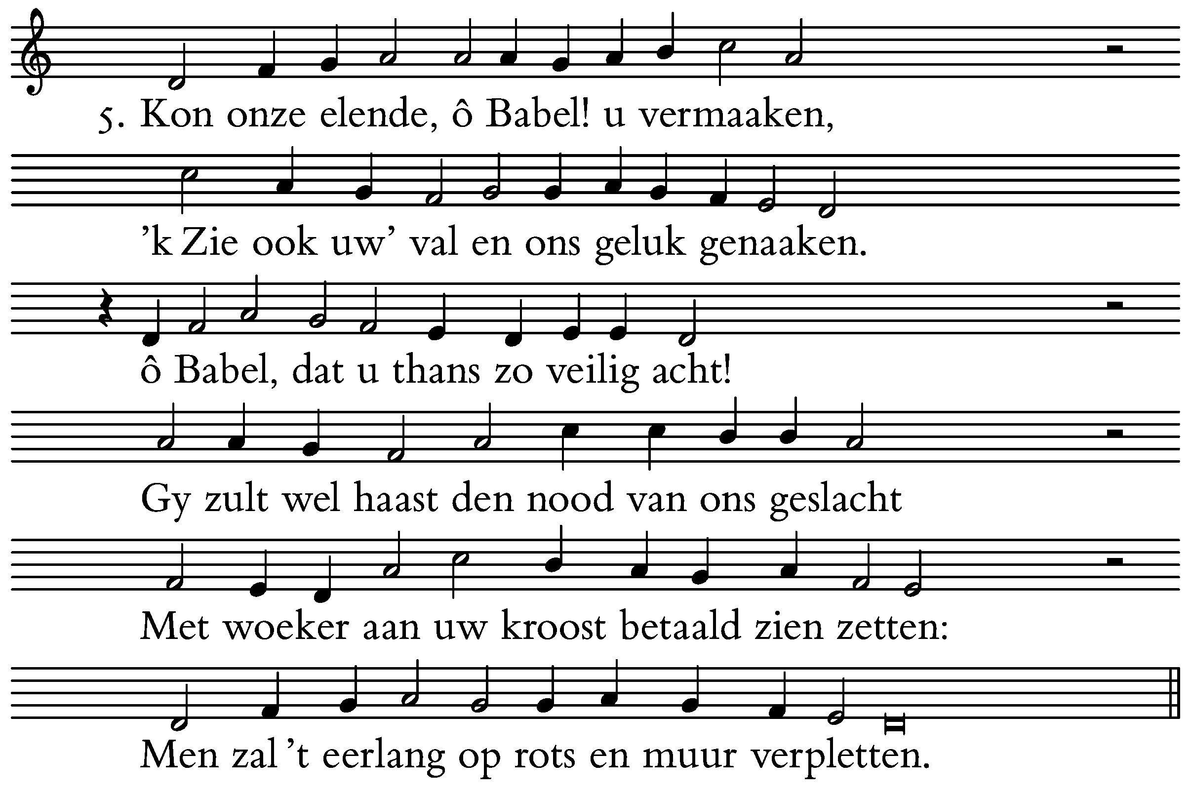5. Kon onze elende, ô Babel! u vermaaken,