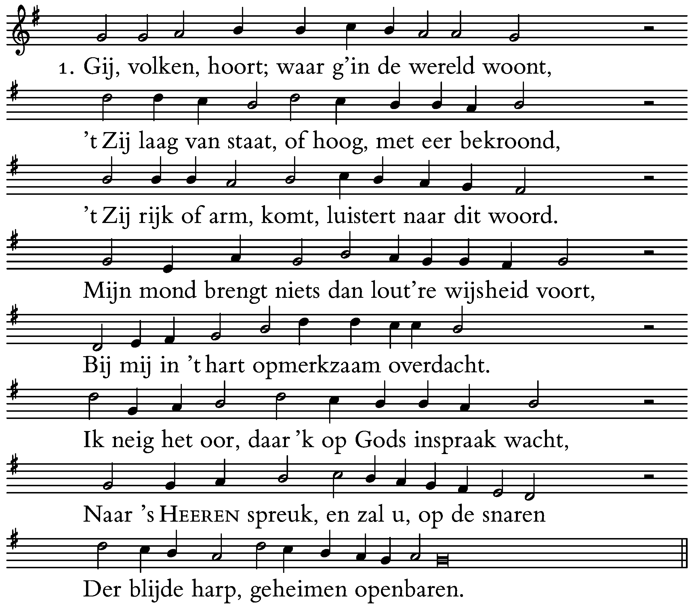 Gij, volken, hoort; waar g’in de wereld woont,