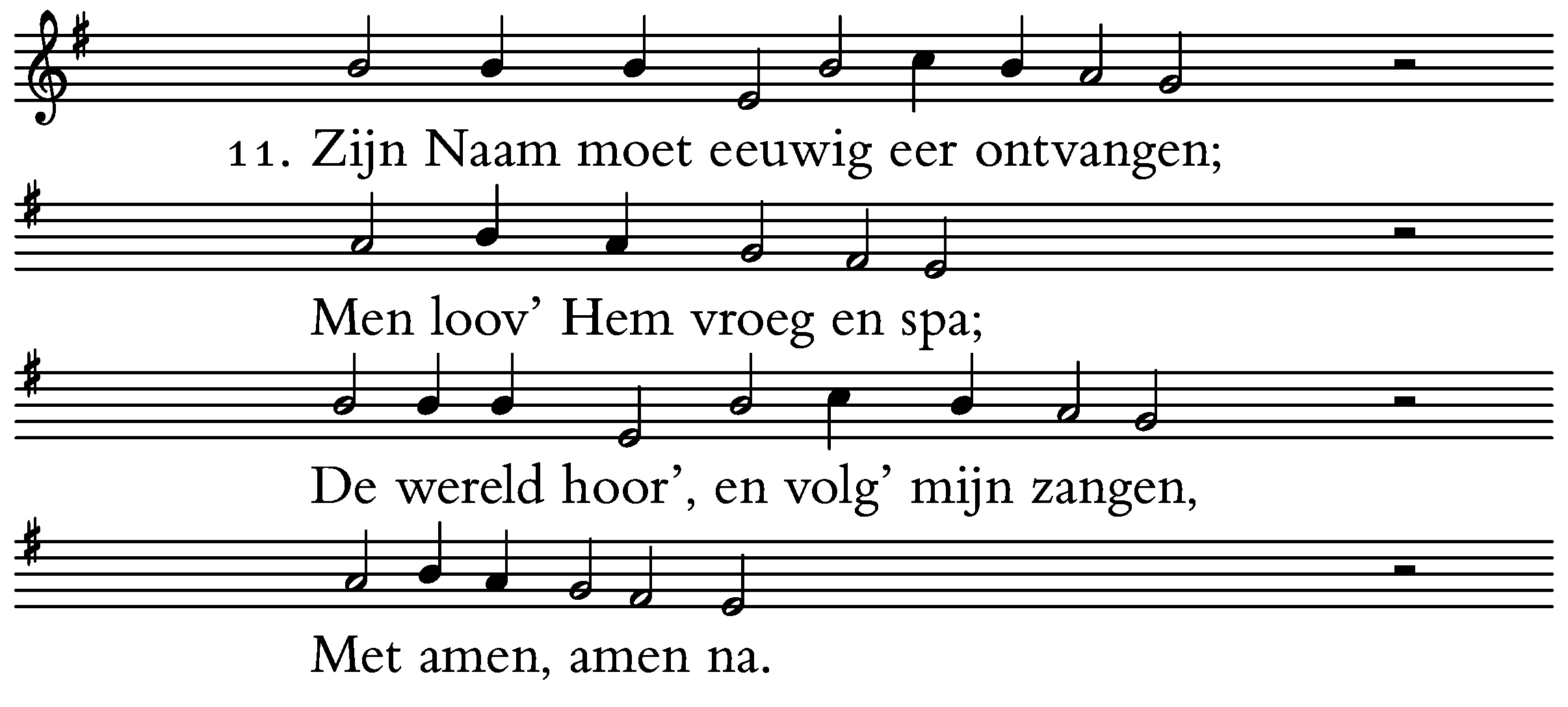 11. Zijn Naam moet eeuwig eer ontvangen;