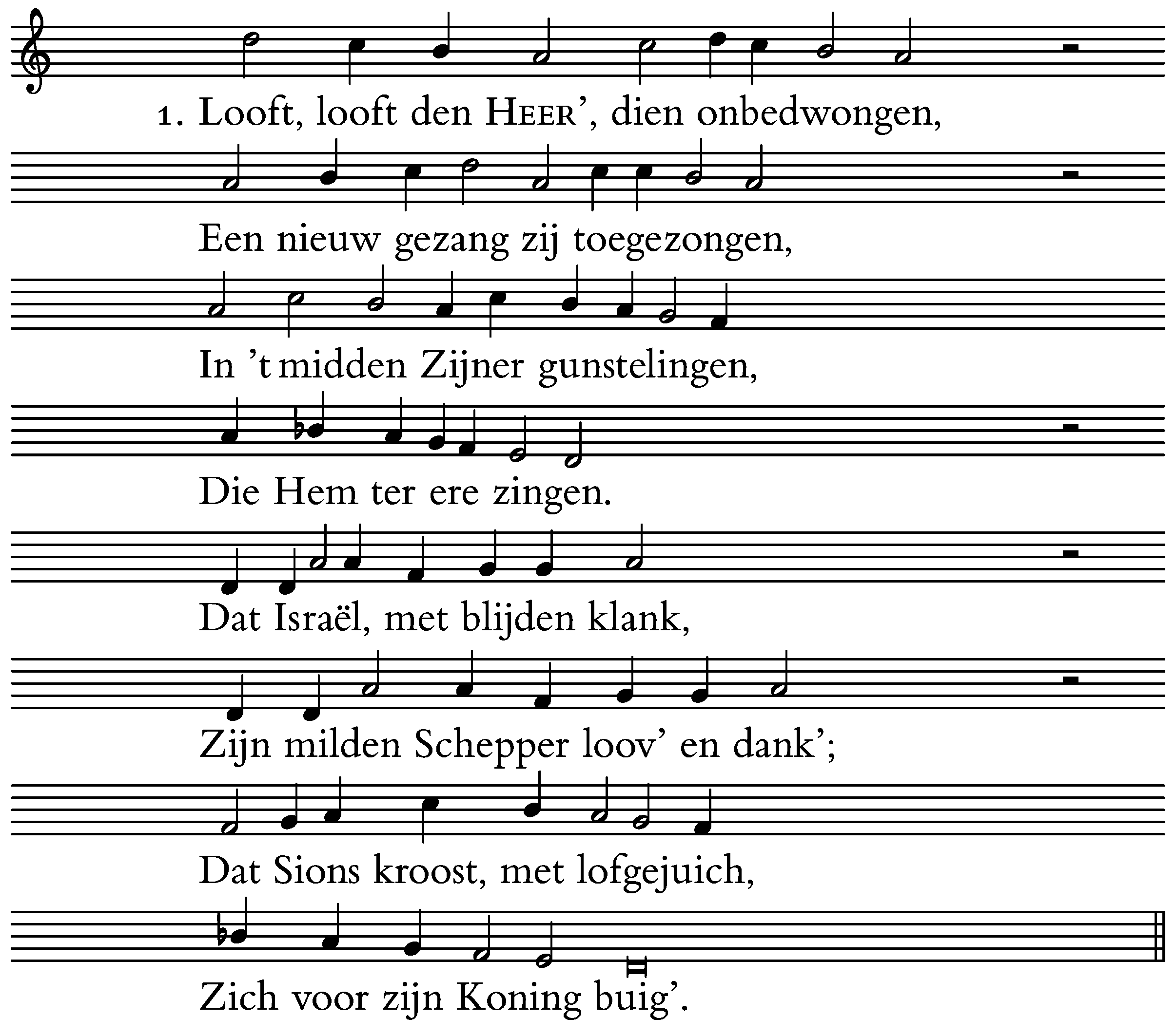1. Looft, looft den HEER’, dien onbedwongen,